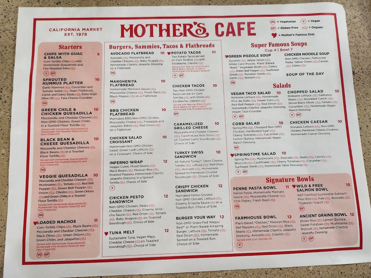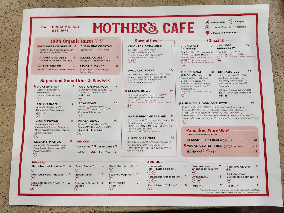 Welcome to Mother's Cafe, a charming spot located in Brea, California, where culinary creativity meets comfort. This cafe offers a diverse menu perfect for breakfast enthusiasts and health-conscious diners alike.